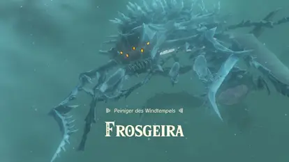 mit Flederbeißeraugen-Pfeilen Abschießt, denn dann muss man nicht warten, bis die Steine sich gelöst haben und es gibt einen Auto-Aim. Wenn man eine dieser Schichten zerstört hat, fliegt Frosgeira und ein kugelförmiges Portal und taucht in einem weiteren danach wieder unter einem auf und versucht einen von unten anzugreifen.