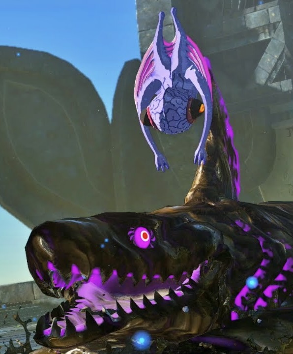 Insgesamt gibt es drei davon. Unter der Steinschicht kommt eine kristallartige Schicht zum Vorschein. Diese kann man zerstören, indem man Pfeile darauf schießt, oder im Sturzflug darein fliegt(dabei bekommt man keinen Schaden). Am effitientesten ist es aber, wenn man unter Frosgeira fliegt und von unten die Kristallschicht