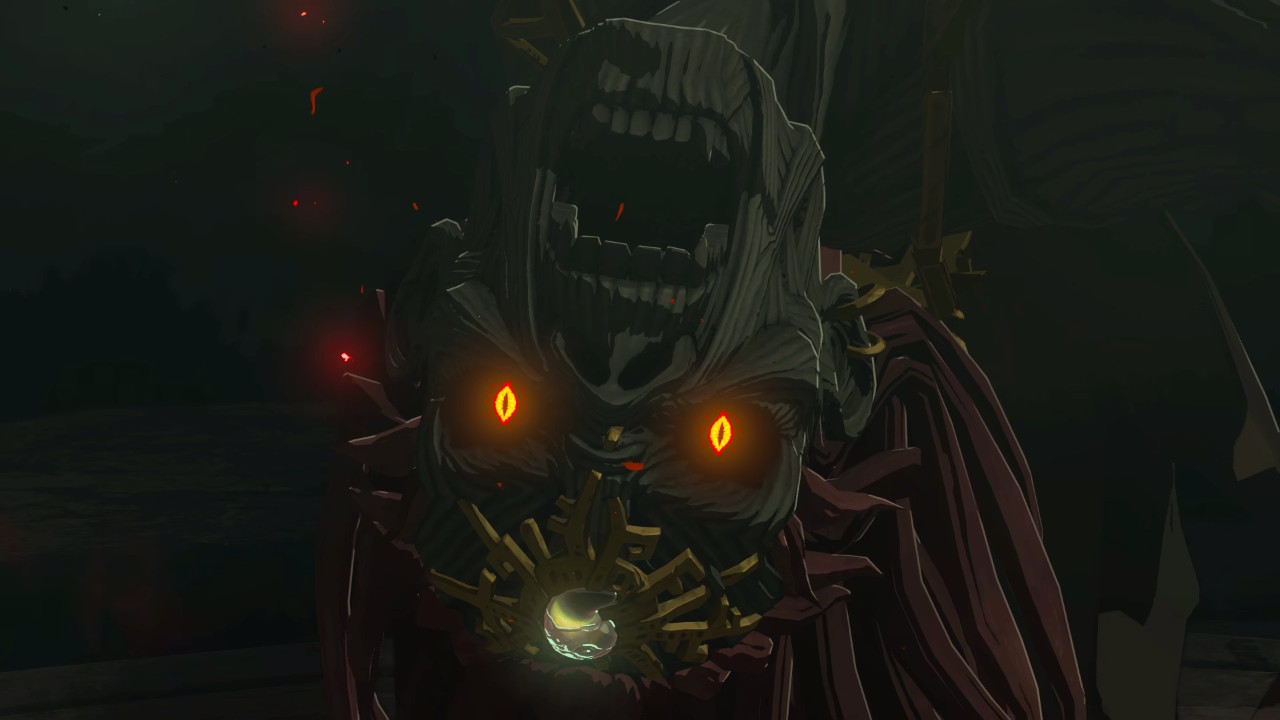 Die Geschichte von Tears of the Kingdom knöpft direkt an die von Breath of the Wild an. Das Spiel startet mit einer Videosequenz, in der Link und Zelda die Katakomben unter Schloss Hyrule erkunden. Dabei stoßen sie auf ein mysteriöses Wesen, es ist Ganondorf. Auf ihm ist eine Mysteriöse Apparatur, die wie eine Hand aussieht, sie fällt von ihm runter und aus ihr ein Mysterienstein, der vor Zelda landet, diese Stelle ist wichtig, denn sie nimmt ihn in die Hand. Ganondorf erwacht und greift sie dann an. Link stellt sich ihm mit dem Masterschwert, doch er und das Masterschwert sind nicht stark genug. Link hat nach dem Kampf nur noch drei Herzen, eine verletzte Hand und zu allem Unglück ist das Masterschwert zerstört. Als man denkt, es könnte nicht mehr schlimmer kommen, richtet Ganondorf einen mächtigen Miasmastrahl gegen die Decke. Das hat verheerende Folgen: Schloss Hyrule erhebt sich in die Luft, es fallen Trümmerteile vom Himmel der Boden der Katakomben stürtzt ein und Zelda fällt runter in die Tiefe. Link springt hinterher und versucht sie noch an der Hand zu packen, er verpasst sie aber knapp. Zelda erleuchtet plötztlich in einem gelben Licht und verschindet. Auf einmal geht ein Ruck durch Link, die mysteriöse Hand hat ihn gepackt und zieht ihn hoch und beide verschwinden in einem weißem Licht.