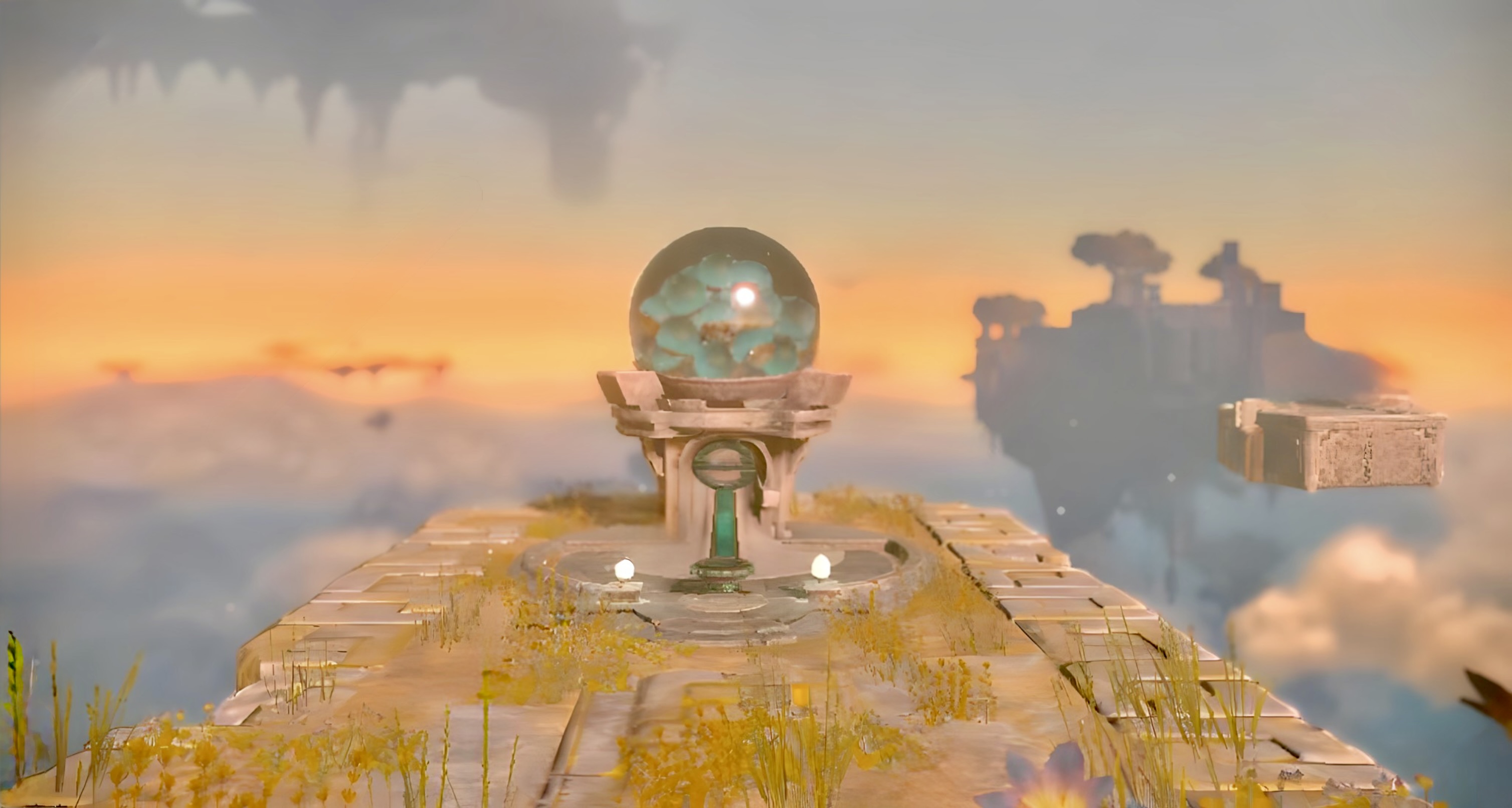 Die Entstehung der Himmelsinseln ist eng mit den Ereignissen um den Zerfall des Schlosses Hyrule verbunden. Als Ganondorfs Macht im Vorspann entfesselt wird, beginnt nicht nur der Boden Hyrules zu beben, sondern auch der Himmel sich zu verändern. Aus den Wolken treten plötzlich geheimnisvolle Inseln hervor. Diese Himmelsinseln tragen Merkmale einer längst vergessenen Kultur: der Zonai, einem Volk, das schon in Breath of the Wild angedeutet wurde, aber nie vollständig erklärt war. Ihre Architektur – geprägt von spiralförmigen Mustern, hellgoldenem Stein und technischen Apparaturen – zeugt von einem tiefen Verständnis von Energie, Zeit und Natur. Die Himmelsinseln sind daher mehr als nur neues Terrain – sie sind heilige Orte, Zeugen einer Vergangenheit, die enger mit dem Schicksal Hyrules verbunden ist, als es zunächst scheint. Sie stehen symbolisch für das Wiederaufsteigen alten Wissens und den Kampf zwischen Licht und Finsternis, der sich über Zeitalter hinweg zieht.